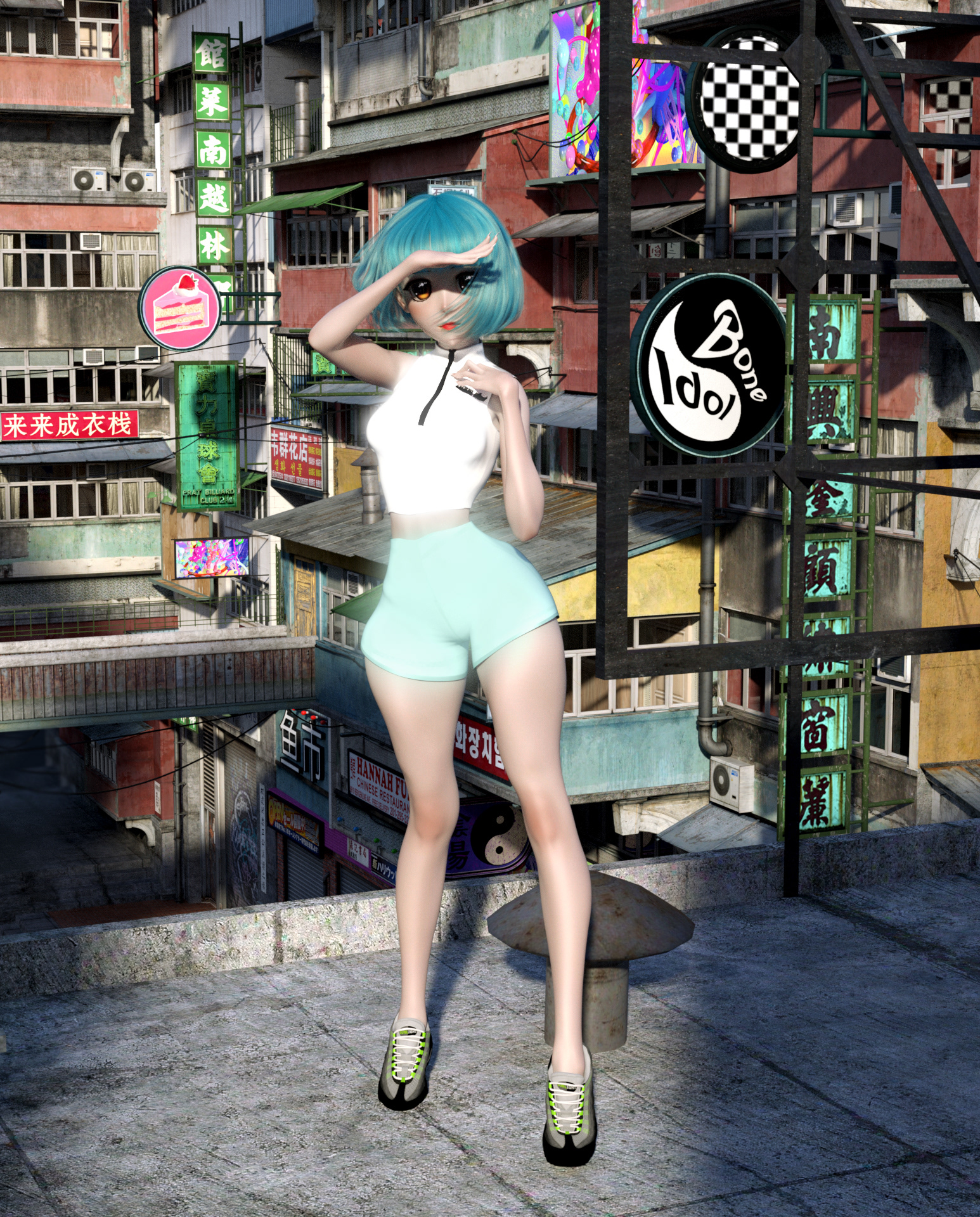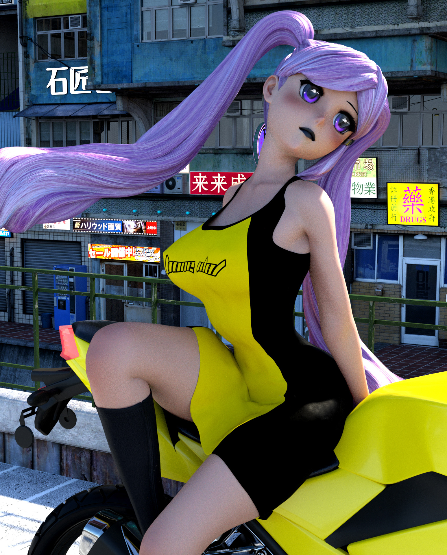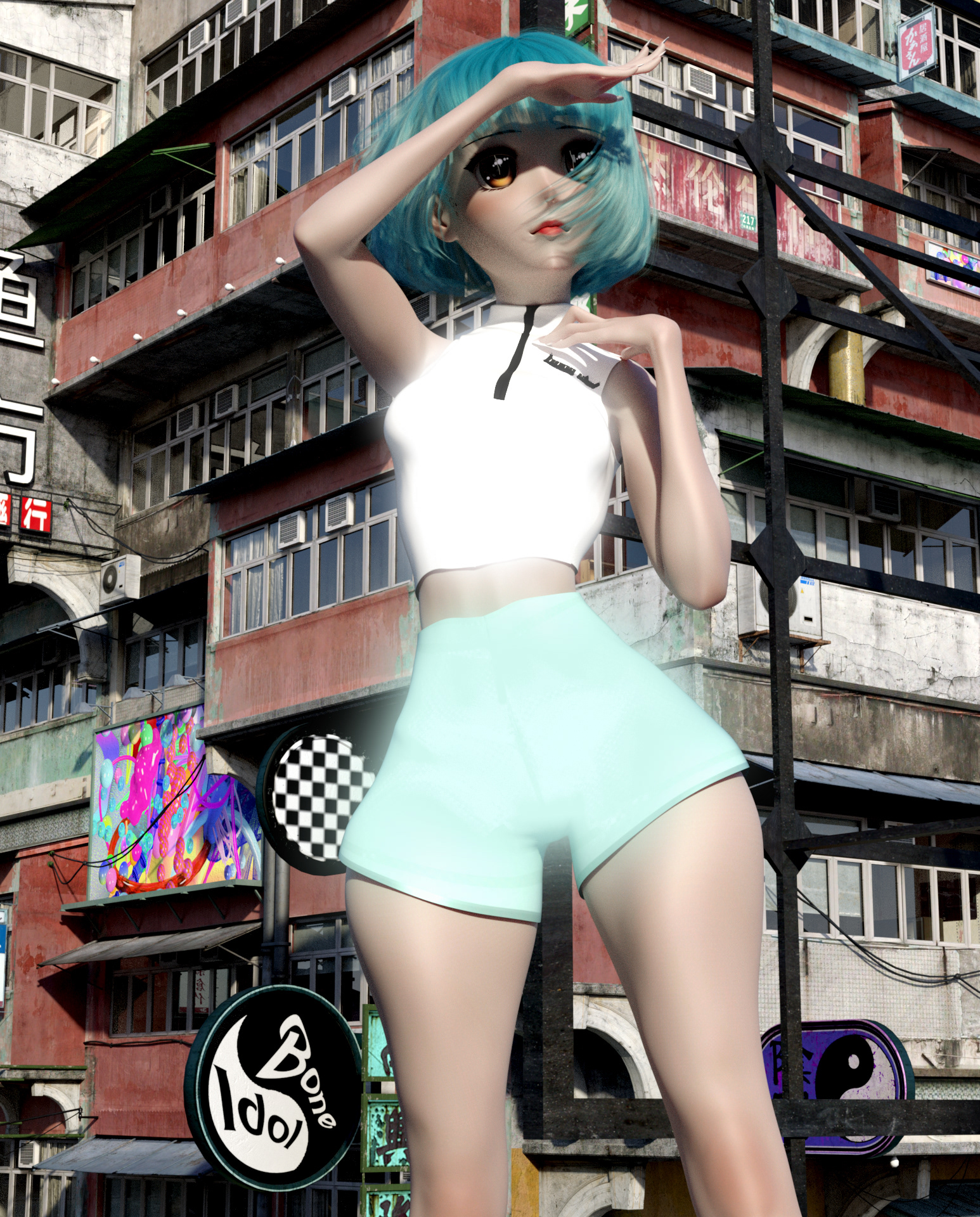 Role/Tasks: 3D modeling of the clothing, 3D environment assembly, character posing, texture mapping, character customization (body shaping, hair colour, anime style configuration), lighting, rendering, and post-production (Adobe Photoshop).